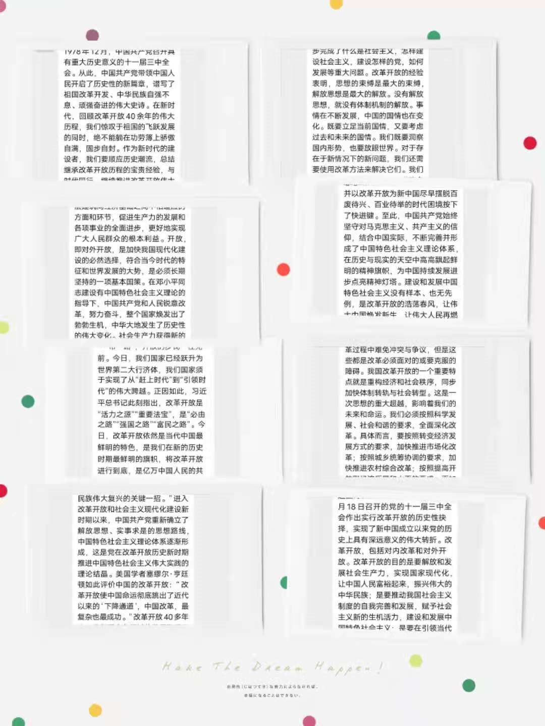 随后,支部党员结合学科特色谈了个人心得并进行了讨论。邵思蒙认为,理解改革开放离不开当时面临的国际环境。在美苏争霸纵深化的七八十年代之交,以美国为首的西方世界处于对抗苏联的现实需要,采取了所谓接触政策。在此背景下,中国承接了西方的产业转移,利用改革开放前三十年积累的工业基础和劳动力基础,成功融入了全球化浪潮,实现了经济高速发展,但同时也承担了大量的环境污染和数次恶性的输入性通货膨胀。鲍墨尔根认为,改革开放是当代中国最鲜明的特色,是我们党在新的历史时期最鲜明的旗帜,是决定当代中国命运的关键抉择,是党和人民事业大踏步赶上时代的重要法宝。实践证明,改革开放是强国之路,是党和国家发展进步的动力源泉。覃李慧认为,改革开放 40 年以经济建设为中心的现代化发展战略,指引中国创造了发展中国家经济腾飞的奇迹,同时又保持社会相对稳定的局面,为其他发展中国家实现现代化提供了发展与社会稳定的双重经验。针对发展带来的诸多风险与挑战,需要以加强社会治理体制机制创新为主线,在实践中探索出更多的社会矛盾治理机制。王艺曌认为,当前,改革已经进入攻坚期和深水区,唯有坚守对中国特色社会主义的信念,把握稳中求进总基调,权衡改革发展稳定的辩证关系,才能创造更多更大的中国奇迹。王娅认为,回望改革开放以来的各种翻天覆地的变化,更加坚定了我们要寻求变化与改革的决心。改革过程中难免冲突与争议,但是这些都是改革必须面对的或要克服的障碍。必须按照科学发展、社会和谐的要求,全面深化改革,尤其是要让人民共同分享改革成果。王永恒认为,改革开放赋予了中国社会新鲜的活力和动力,改革开放以来我国的社会物质建设和社会精神文化建设都取得了前所未有的进步。这段党史,给予我们最大的启示就是要敢于突破既有的思维局限和敢于创新。我们要将改革开放中所体现的创新意识、创新精神融入到新时代的建设之中。关悦认为,改革开放40多年来,我们国家各领域的发展取得巨大成就,经济实力、科技实力、综合国力和人民生活水平显著提升,人民生活的幸福感显著增强。成长于国家不断富强的时代,我们更应珍惜这来之不易的幸福生活,把握青春的宝贵时光,将个人的奋斗与国家的发展紧密联系在一起,为实现中华民族伟大复兴的中国梦不断努力奋进。魏晓旭认为,改革开放是我国发展历程中的重要里程碑,也是中国以实际行动践行“发展权作为首要的基本人权”理念的过程中。改革开放最重要的就是提高了中国的生产和发展水平,一方面,提高了社会的发展水平,让社会总的财富水平有所提高;另一方面,社会总的发展水平的提升,也让我们每一个具体的个人能够获得更多更好的机会与平台。刘舸认为,我们应牢记历史,不断强化理论学习,锻炼意志,充实学识,开拓思维,有效利用时间与机会,传承改革开放精神,为实现中华民族伟大复兴的中国梦贡献自己的力量。李嵬松认为,中国共产党是改革开放的发起者、推动者和领导者,是中国特色社会主义事业的领导核心。改革开放40年来中国特色社会主义取得的伟大成就,是在中国共产党的领导下取得的。中国特色社会主义事业是前无古人的伟大事业,而伟大事业必须要有伟大坚强的党来领导。因此,党需要在斗争中,在实践中不断加强自身建设,不断提高党的建设质量,不断适应改革开放和时代发展的新要求。纪力玮认为,改革开放的经验表明,思想的束缚是最大的束缚,解放思想是最大的解放。没有解放思想,就没有体制机制的解放。事情在不断发展,中国的国情也在变化。既要立足当前国情,又要考虑过去和未来的国情。我们既要洞察国内形势,也要放眼世界。对于存在于新情况下的新问题,我们还需要使用改革方法来解决它们。张金阳认为,在改革开放时期,在经济建设过程中,逐渐形成了“执着专注、精益求精、一丝不苟、追求卓越”的“工匠精神”。工匠精神是时代精神的生动体现,折射着各行各业一线劳动者的精神风貌,为各个专业领域高质量发展不断注入精神动力。“工匠精神”的传承需要包括我们在内的每位劳动者共同努力,一定将我国打造成一个“无所不造,无所不精”的社会主义强国,从而实现中华民族伟大复兴的中国梦。杨丰一认为,在新时代,回顾改革开放40余年的伟大历程,我们惊叹于祖国的飞跃发展的同时,绝不能躺在功劳簿上骄傲自满,固步自封。作为新时代的建设者,我们要顺应历史潮流,总结继承改革开放历程的宝贵经验,与时代同行,继续推进改革开放伟大事业。