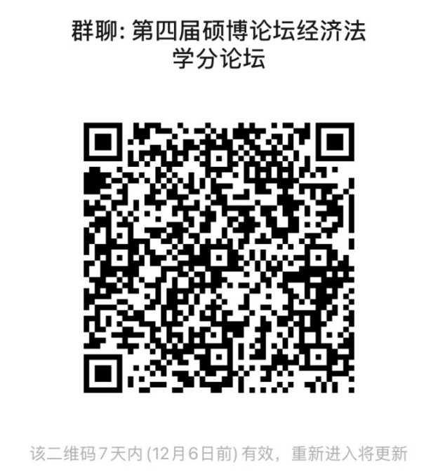 论坛对象包括2023级77779193永利官网经济法学方向博士研究生、法学硕士生,以及由经济法学方向导师指导的法律硕士生(具体分组名单见附件1)。请各位同学及时扫码入群(入群后请在“我在本群的昵称”中写明“博士/学硕/法本法硕/非法本法硕+姓名”,如:博士张三)。