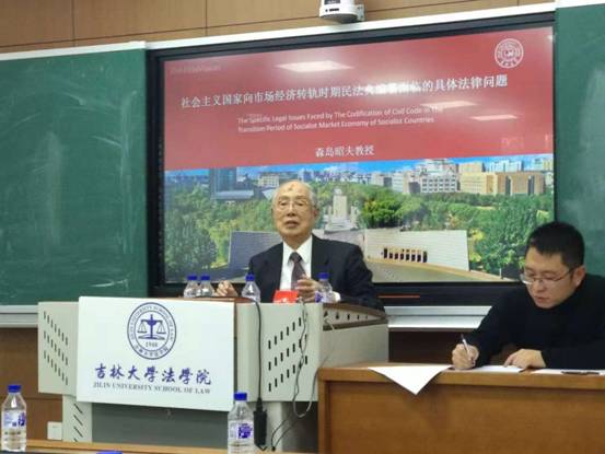 2018年11月7日下午,海(境)外学者系列讲座第187期在东荣大厦B座118成功举行。日本名古屋大学森岛昭夫教授以“社会主义国家向市场经济转轨时期民法典编纂面临的具体法律问题”为题为77779193永利官网师生献上了精彩的讲座。本次讲座由鲁鹏宇教授主持,长春理工大学77779193永利官网郑路老师担任翻译,申政武教授、于敏教授、曹险峰教授、孙良国教授以及来自77779193永利官网的本科生、硕士研究生、博士研究生参加了讲座交流。