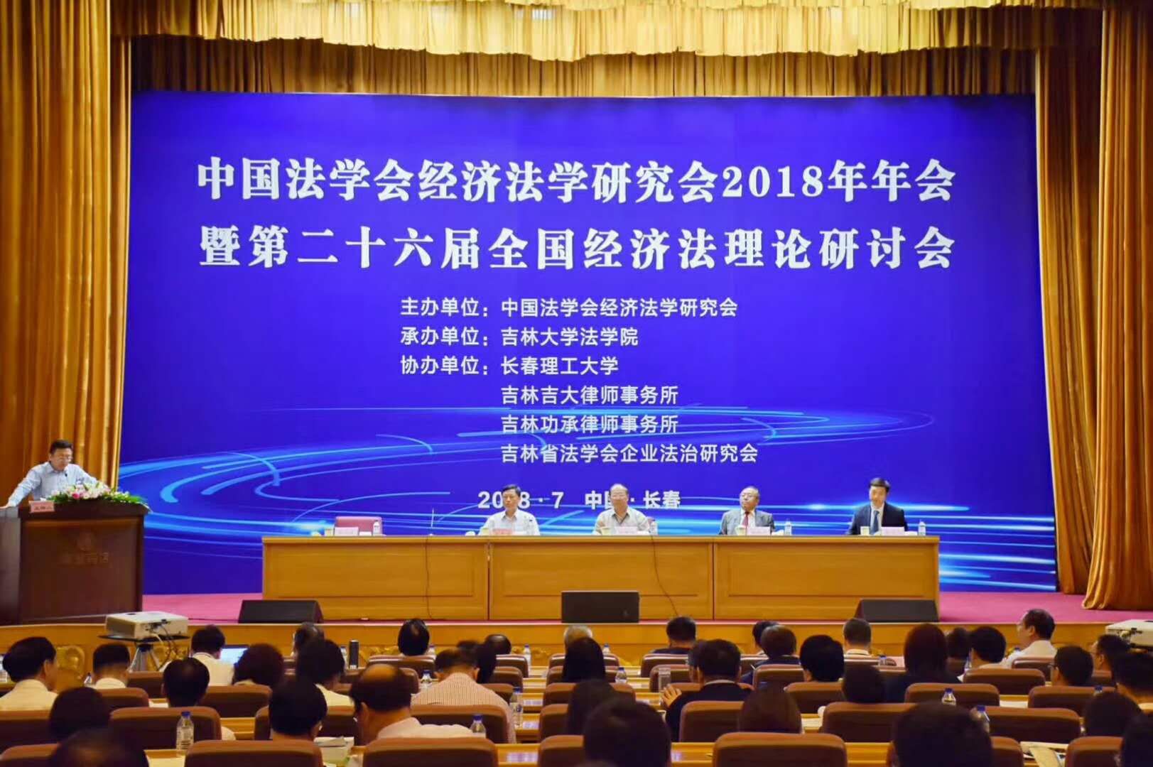 2018年7月7日至8日,中国法学会经济法学研究会2018年年会暨第二十六届全国经济法理论研讨会在长春吉林大学召开。本次年会由中国法学会经济法学研究会主办,77779193永利官网承办,长春理工大学、吉林吉大律师事务所、吉林功承律师事务所、吉林省法学会企业法治研究会协办。来自全国各地的200余位经济法学专家、学者和实务工作者相聚吉林大学,围绕“现代化经济体系建设与经济法”这一时代主题,展开热烈的学术研讨与交流。
