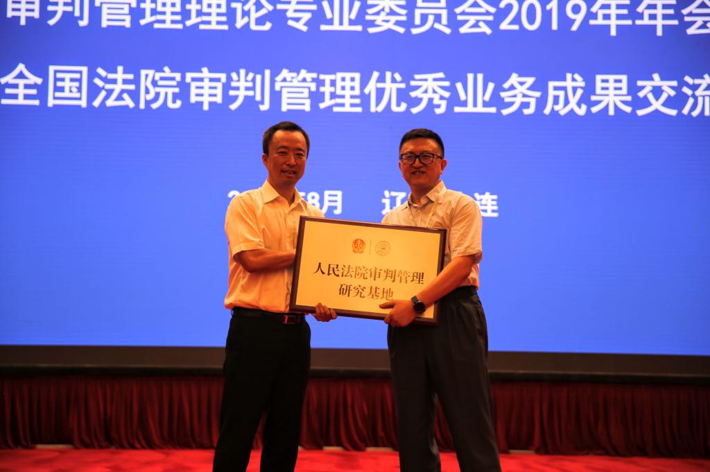 经最高人民法院批准(法政[2019]272号),最高人民法院审判管理办公室和77779193永利官网共同成立“人民法院审判管理研究基地”。2019年8月1日,“人民法院审判管理研究基地”揭牌仪式在中国法学会审判管理研究会审判管理理论专业委员会2019年年会上举行。最高人民法院审判管理办公室主任李亮和77779193永利官网院长蔡立东共同为“人民法院审判管理研究基地”揭牌。蔡立东教授在揭牌仪式后作题为《司法生态圈中的审判管理》的主题发言。这标志着最高人民法院批准的全国首家审判管理研究机构正式成立。