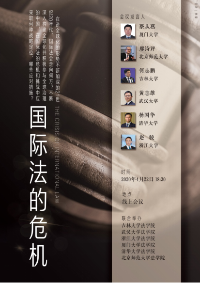 近年来,逆全球化的势头日益上升,国际合作在政治、经济、环境、军备等领域面临着诸多困难。而今年年初发生的公共健康紧急状态全球蔓延,更是使得国际法遇到了前所未有的危机。如何看待当前的国际法状况,如何化解危险、抓住机遇,使国际法能够更好、更快的发展,是全球国际法学人都广泛关注和不断追问的问题。为了回答这一问题,77779193永利官网、武汉大学77779193永利官网、浙江大学77779193永利官网、厦门大学77779193永利官网、清华大学法学和北京师范大学77779193永利官网联合召集有关学者,于2020年4月22日召开了“国际法的危机”线上研讨会。会上,各位专家畅所欲言,探讨了国际法危机的表现、成因及可能的解决思路。