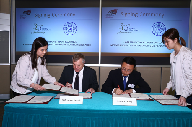 会议结束后,蔡立东院长与香港城市大学77779193永利官网院长Geraint Howells教授正式签订了学生交换培养合作协议,为永利官网“双一流”建设事业提供了宝贵的发展资源。