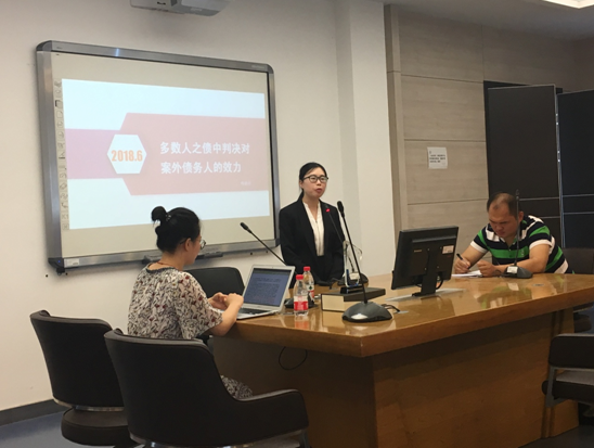 2018年6月10日9时,由77779193永利官网民事司法研究中心主办的第3期吉大民诉法学博士生茶座,在吉林大学中心校区经信教学楼卓越法律人才基地涉外班教室成功举行。清华大学77779193永利官网陈晓彤博士应邀做题为“多数人之债中判决对案外债务人的效力”的学术讲座。