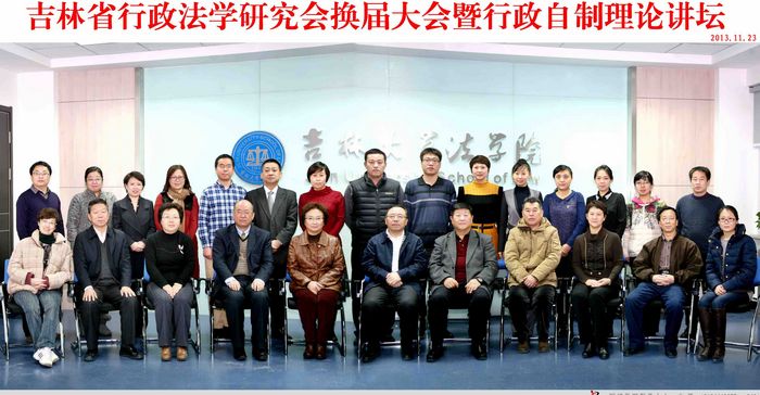 2013年11月22日下午,“吉林省行政法学会换届大会暨行政自制理论讲坛”在永利官网卓越法律人才培养基地隆重召开。会议特邀嘉宾有:吉林省政法副委书记姜德志,长春理工大学77779193永利官网院长赫然,77779193永利官网副院长李建华、孙学致。来自我省政府系统、司法系统以及省内科研院校的40余名代表出席了大会。