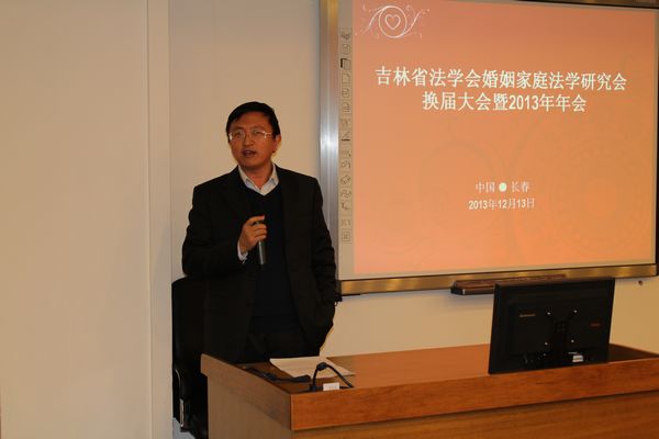 2013年12月13日下午1点30分,吉林省法学会婚姻家庭法学研究会换届大会暨2013年年会在吉林大学中心校区隆重召开,来自于吉林省法学会、吉林省政协、吉林省妇联权益部、吉林省民政厅、长春市妇儿工委、长春市妇联权益部部长、长春市总工会、长春市民政局等政府部门、省市区司法机关、律师事务所、省内主要高校等20多位代表出席了本次会议。会议由永利官网曹险峰副教授主持,经出席会议的全体常务理事选举、表决,永利官网李洪祥教授当选为吉林省法学会婚姻家庭法学研究会会长,永利官网曹险峰副教授当选为秘书长。