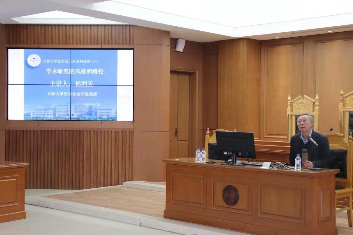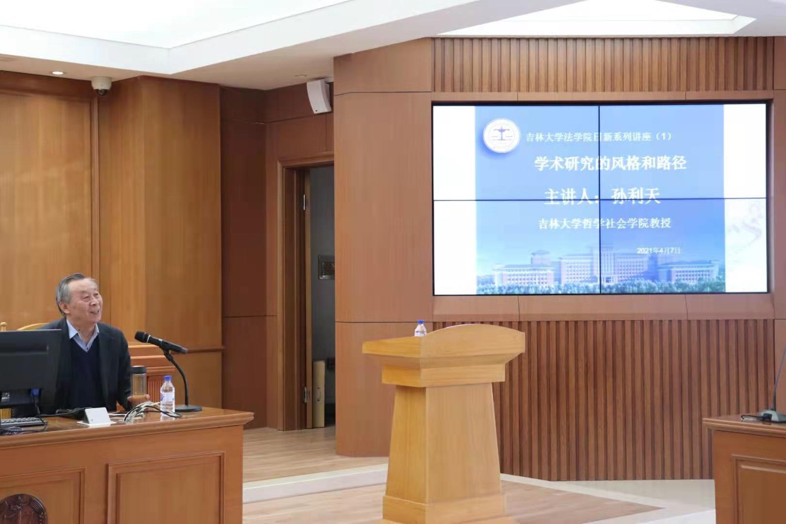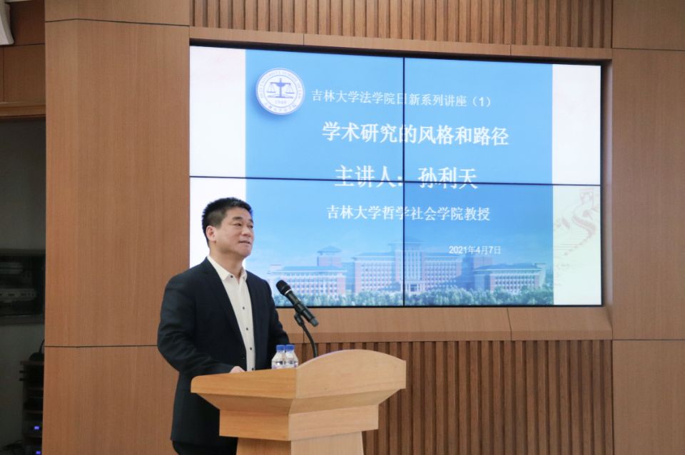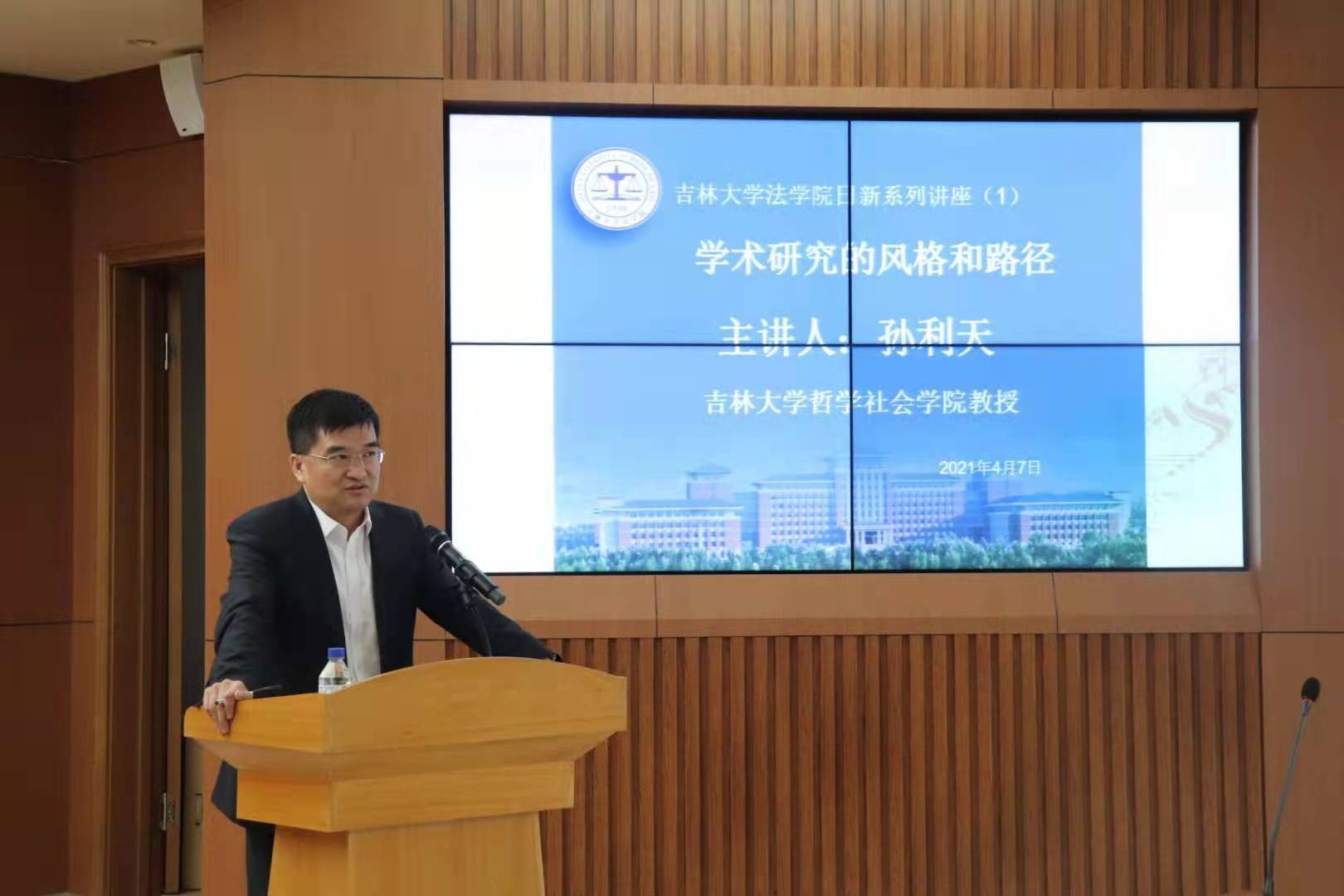 2021年4月7日下午,吉大法学日新系列讲座第一讲在中心校区三教五阶举行,我国著名哲学家、吉林大学匡亚明特聘卓越教授、国家“万人计划”教学名师、哲学社会学院孙利天教授应邀为永利官网师生进行题为“学术研究的风格和路径”的学术讲座。本次讲座由77779193永利官网党委书记周春国主持,77779193永利官网院长何志鹏教授在讲座结束后进行了总结,77779193永利官网全体教师、部分博士研究生及硕士研究生现场聆听了讲座。