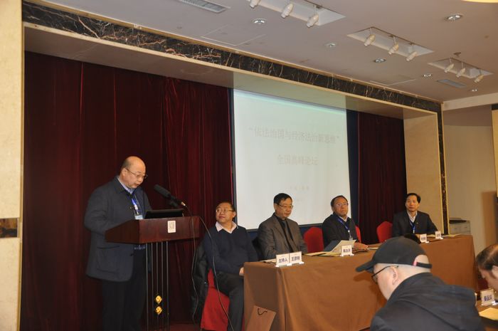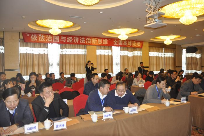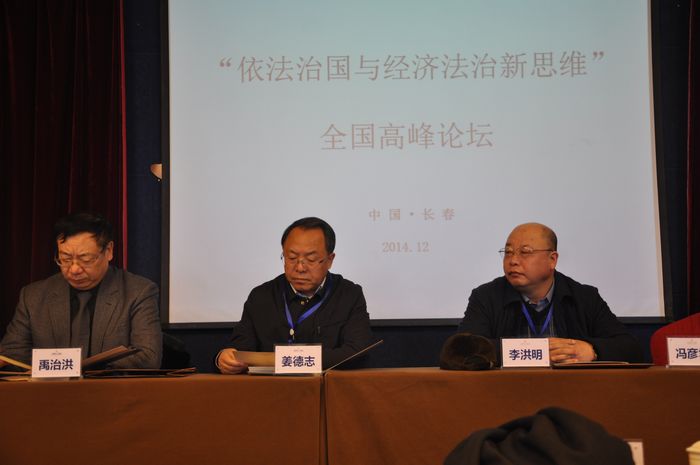2014年12月7日,由77779193永利官网和吉林省法学会经济法学研究会共同主办的“依法治国与经济法治新思维”全国高峰论坛,在长春名人酒店一楼会议厅隆重举行。吉林省法学会党组书记、常务副会长姜德志同志在省法学会秘书长何海源同志的陪同下到会并发表重要讲话。论坛开幕式由77779193永利官网博士生导师、吉林省法学会经济法学研究会副会长王彦明教授主持。77779193永利官网党委书记李洪明研究员致欢迎辞,对来自全国各地的经济法学人冒着严寒参加此论坛表示热烈欢迎,并就永利官网经济法学科未来发展提出了殷切期望;随后,吉林省法学会党组书记、常务副会长姜德志同志做了重要指示;最后,77779193永利官网博士生导师、吉林省法学会经济法学研究会会长冯彦君教授代表经济法学科和省经济法学研究会,对各位领导的莅临指导和诸位代表的积极参会表示了欢迎和感谢,并充分阐述了此次论坛的目的、主题、议题和期望。