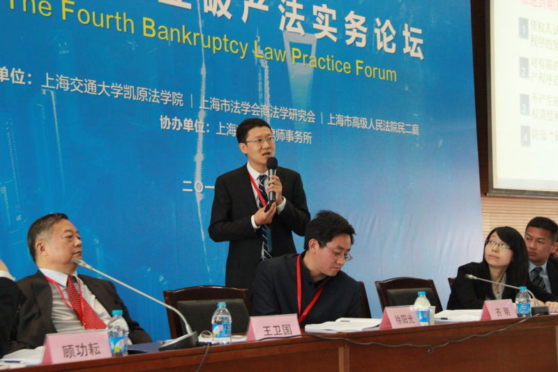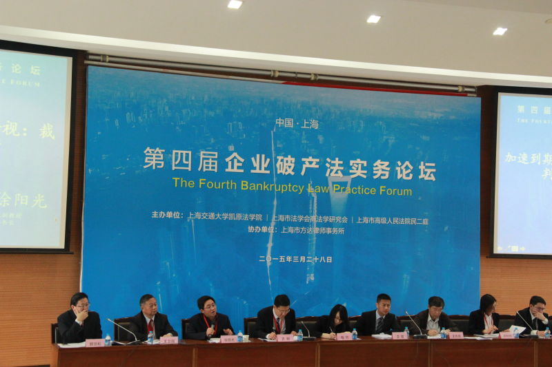 2015年3月28日,第四届“企业破产实务论坛”在上海召开,论坛由上海交通大学凯原77779193永利官网,上海市法学会商法学研究会,上海市高级人民法院民二庭主办,由上海市方达律师事务所协办。来自全国法院、科研院所、律师和会计师事务所等180余人参加,最高人民法院民二庭副庭长付金联法官、华东政法大学副校长顾功耘教授、凯原77779193永利官网院长季卫东教授出席并致开幕词。会议围绕“银行借贷加速到期条款的破产法检视”、“破产案件中的担保问题”和“破产制度新探索”三个主题进行讨论。
