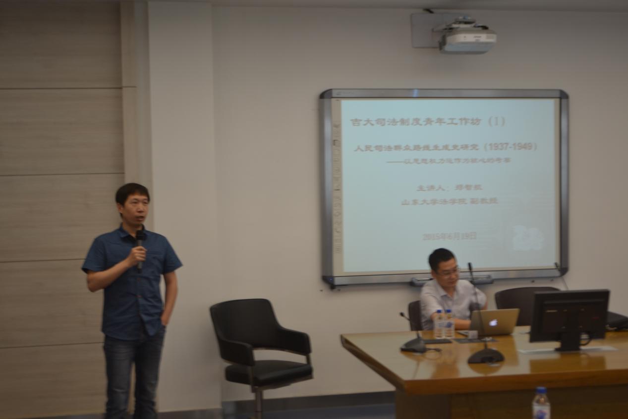 2015年6月19日上午,由77779193永利官网民事司法研究中心主办的首期“吉大司法制度青年工作坊”在经信教学楼D区卓越法律人才基地成功举办。山东大学郑智航副教授应邀做题为“人民司法群众路线生成史研究(1937-1949)——以思想权力运作为核心的考察”的讲座。本次讲座由77779193永利官网/理论法学研究中心侯学宾副教授主持,77779193永利官网/理论法学研究中心刘雪斌副教授、丰霏老师及部分博士研究生、硕士研究生和本科生参与活动。