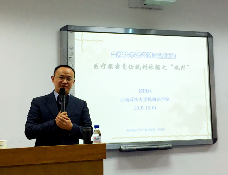 2015年12月7日下午,第35期吉大法学“新锐茶座”在吉林大学中心校区卓越法律人才基地成功举行。本期茶座有77779193永利官网、吉林大学理论法学研究中心和国家司法文明协同创新中心联合主办,邀请西南政法大学民商77779193永利官网教授、博士生导师侯国跃老师做“医疗损害责任裁判规则依据之裁判”主题讲座。茶座由曹险峰教授主持。