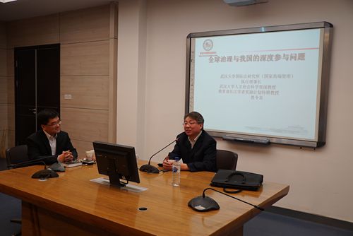 2016年5月7日晚18点30分,武汉大学人文社会科学资深教授曾令良先生在永利官网涉外卓越法律人才培养基地教室做了《全球治理结构变革与中国的深度参与》的报告。本次报告是吉林大学建校70周年哲学社会科学名家讲座的第9场(总第883场),报告由何志鹏教授主持。