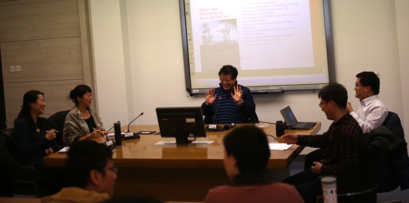 王江雨教授首先从国际秩序出发,提出需要对当代的世界格局保有一种警惕和批判的态度,同时也要对中国在国际社会中的表现进行全面深入的认知。进而讨论了国际秩序的概念、样态和价值,讨论了在当今社会维持国际秩序的主要力量、国际法在世界秩序中的地位。特别是分析了当今中国在世界所希求的国际秩序,中国利益需求与全球利益需求之间的和谐与背离;特别是从国际法律秩序的角度研讨了中国国家利益的取向,在法律秩序之下中国有可能受到的利益推进和行为制约。在针对这些问题的讨论过程中,王江雨教授与参加讲座的各位老师及同学展开了充分的讨论,并且提出了一系列的论断,引导老师和同学们进行深入思考。
