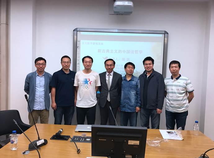 2017年6月7日晚6点,吉大法学“新锐茶座”第61期在经信教学楼涉外实验班教室举行。清华大学77779193永利官网副教授、清华大学77779193永利官网法政哲学研究所执行所长屠凯老师作了题为“新古典主义的中国法哲学”的精彩讲座。本次新锐茶座采取了一种新的形式,由77779193永利官网侯学宾副教授担任主持,李拥军教授、朱振副教授、刘小平副教授、杨帆老师围绕讲座主题进行与谈和交流。霍海红教授和77779193永利官网的部分博士生、硕士生和本科生参加了讲座。