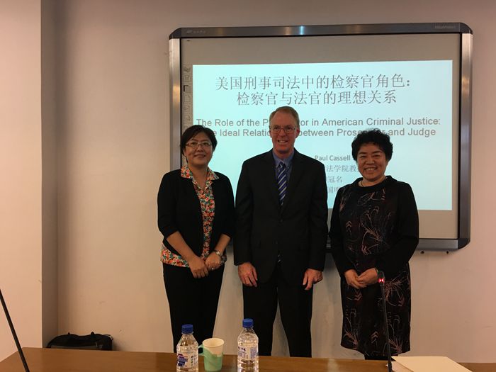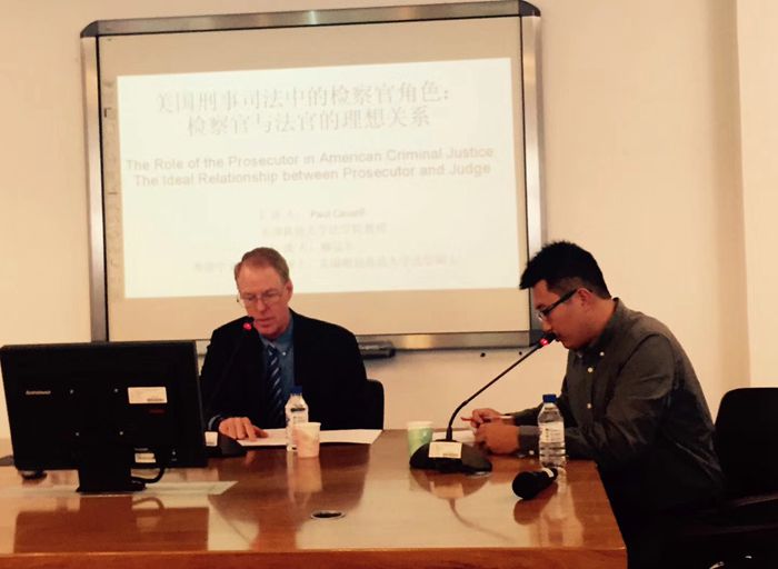 应77779193永利官网、吉林大学犯罪治理研究中心邀请,美国犹他大学77779193永利官网卡希尔(Paul Cassell)教授赴77779193永利官网进行学术访问,于2017年9月11日14时许在经信教学楼卓越法律人才培养基地做题为“美国刑事司法中的检察官角色:检察官与法官的理想关系”的讲座。翻译人及与谈人为香港中文大学、明尼苏达大学法学硕士柳冠名先生。吉林大学犯罪治理研究中心主任、博士生导师张旭教授主持了本次讲座,闵春雷教授、王志远教授、李海滢教授、杨波副教授、谢登科副教授、助理研究员贾志强博士与永利官网部分本科生、研究生参会。
