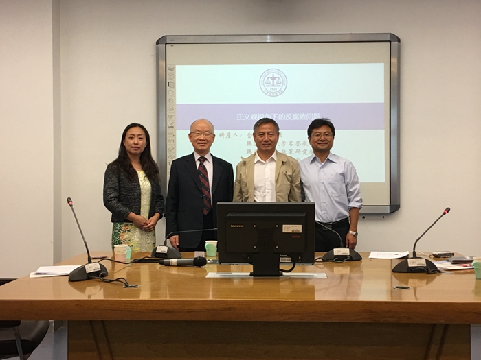 2017年9月19日上午8:30,韩国高丽大学名誉教授、前韩国刑事法政策研究院院长、前韩国刑法学会会长金日秀教授赴吉林大学中心校区经信教学楼D区二楼涉外教室进行了一场 题为“正义观视角下的反腐败问题”的学术讲座。77779193永利官网李韧夫教授、李海滢教授、郑军男副教授等出席了本次讲座;参与本次讲座的还有部分77779193永利官网的博士研究生、硕士研究生和本科生。讲座由李海滢教授主持。
