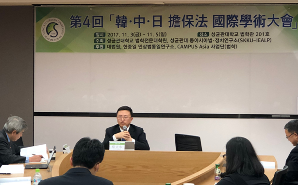 2017年11月2—5日,由韩国成均馆大学法学专门大学院、财团法人韩中日民事法研究所承办的第四届中日韩三国担保法国际研讨会在韩国成均馆大学召开,来自中国、日本、韩国的十多所高校和实务界的二十余位专家学者、实务精英参加了本次会议,77779193永利官网院长蔡立东教授和民法教研部李国强教授应邀出席了本次会议,并分别在大会上作了相关的主题发言,获得良好的学术影响。