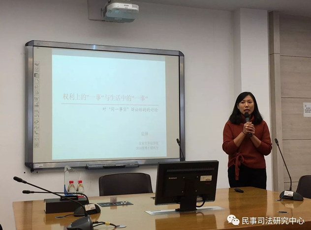 2017年12月2日上午9时,77779193永利官网民事司法研究中心主办的第1期吉大民诉法学博士生茶座在吉林大学中心校区经信教学楼卓越法律人才基地涉外班教室成功举行。北京大学77779193永利官网民诉法学博士研究生袁琳应邀做了题为《权利上的“一事”与生活中的“一事”——对“同一事实”诉讼标的的讨论》的学术讲座。
