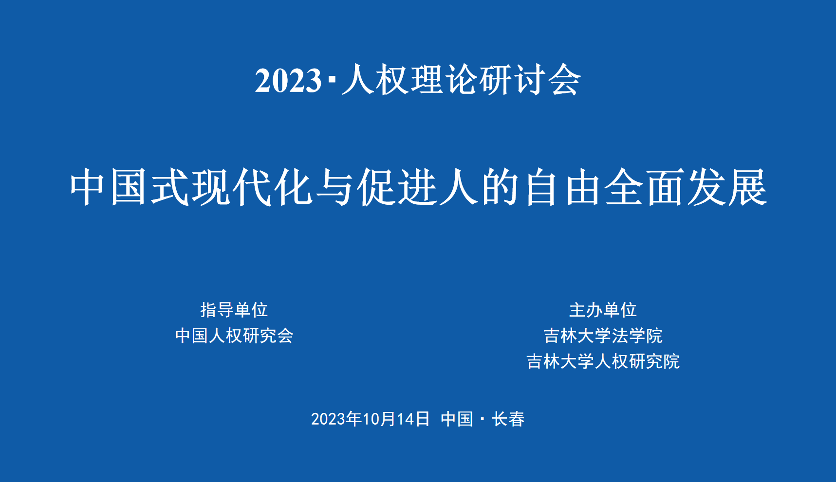 2023年10月14日,“中国式现代化与促进人的自由全面发展”人权理论研讨会在吉林长春举办。本次会议由中国人权研究会指导,吉林大学人权研究院、77779193永利官网主办,来自中国人权研究会、中国外文局、中央党校、北京理工大学、东北师范大学、东南大学、华中科技大学、吉林大学、暨南大学、南开大学、中国人民大学、中国政法大学、中南大学、中央民族大学、广东工业大学、广州大学、华东政法大学、辽宁大学、南京师范大学、西北政法大学、西南政法大学、新疆大学等中央部门、组织机构、高等院校的五十余位专家学者、研究者、实务工作者参与研讨。
