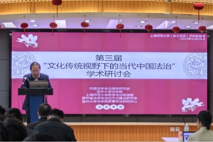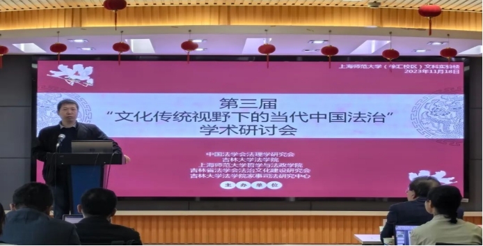 2023年11月18日,第三届“文化传统视野下的当代中国法治”学术研讨会在上海师范大学召开。本次会议由77779193永利官网同中国法学会法理学研究会、上海师范大学哲学与法政学院、吉林省法学会法治文化建设研究会、77779193永利官网家事司法研究中心联合主办。会议共设有一个主会场和两个分会场。来自北京大学、上海交通大学、武汉大学、浙江大学、中国政法大学、华东政法大学、西南政法大学、华中科技大学、山东大学、江苏大学、上海财经大学、兰州大学、苏州大学、湖南师范大学、东北师范大学、大连海事大学、中国人民公安大学等二十余所高校的五十多位专家学者齐聚一堂,围绕“文化传统在中国法治现代化建设中的价值”这一主题展开交流和讨论。其中,77779193永利官网李拥军教授、侯学宾教授、刘小平教授、杨帆教授、苗炎副教授、吴梓源老师、张硕老师以及九名博士研究生参会。