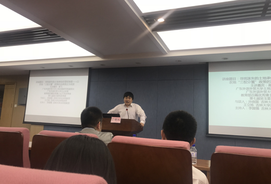 2018年5月8日,由77779193永利官网、吉林大学财产法研究中心主办中国土地法律制度讲座(一)在吉林大学全面依法治国研究中心报告厅成功举行。广东外语外贸大学土地法制研究院副院长、广东外语外贸大学云山学者高飞教授应邀为永利官网师生做了一场题为“寻找迷失的土地承包经营权制度——以农地‘三权分置’政策的法律表达为线索”的学术讲座。77779193永利官网李国强教授主持了讲座,孙良国教授、王立栋博士做与谈发言。77779193永利官网院长蔡立东教授,刑法教研部李立丰教授等老师出席了讲座,参与本次讲座的还有来自吉林省高级人民法院和长春市中级人民法院的法官、长春市部分律师事务所的律师等实务界人士,以及博士研究生、硕士研究生和本科生等各专业的学生。