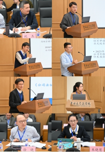 第二单元的主题为“《公司法》中义务责任制度的理解与适用”,该单元由77779193永利官网副教授高宇主持。在汇报环节,深圳大学77779193永利官网副教授薛波以《未届期股权转让当事人恶意串通司法判定与出资义务承担》为题进行了汇报,他展示了未届期股权转让出资义务承担的“常态”与“例外”以及恶意串通的具体考量因素,并在此基础上构建了未届期出资义务承担路径。首都经济贸易大学77779193永利官网讲师孙宝玲的汇报题目是《社会责任条款下董事义务司法审查标准研究》,她讨论了在新《公司法》第20条社会责任条款框架下董事义务的司法审查标准问题。清华大学77779193永利官网助理研究员、“水木学者”博士后陈嘉白以《职工董事信义义务的双重结构与双向协调》为题进行了汇报,他着重阐述了职工董事在双向责任张力下的信义义务协调问题。南京大学77779193永利官网助理研究员杨硕的汇报题目是《类别股与信义义务的再审视》,他讨论了信义义务在类别股这一特殊情形下的适用问题。77779193永利官网副教授陈洪磊以《董事忠实义务条款的体系化研究》为题进行了汇报,他从司法实证入手,对新《公司法》中董事忠实义务条款的适用问题发表了自己的看法。