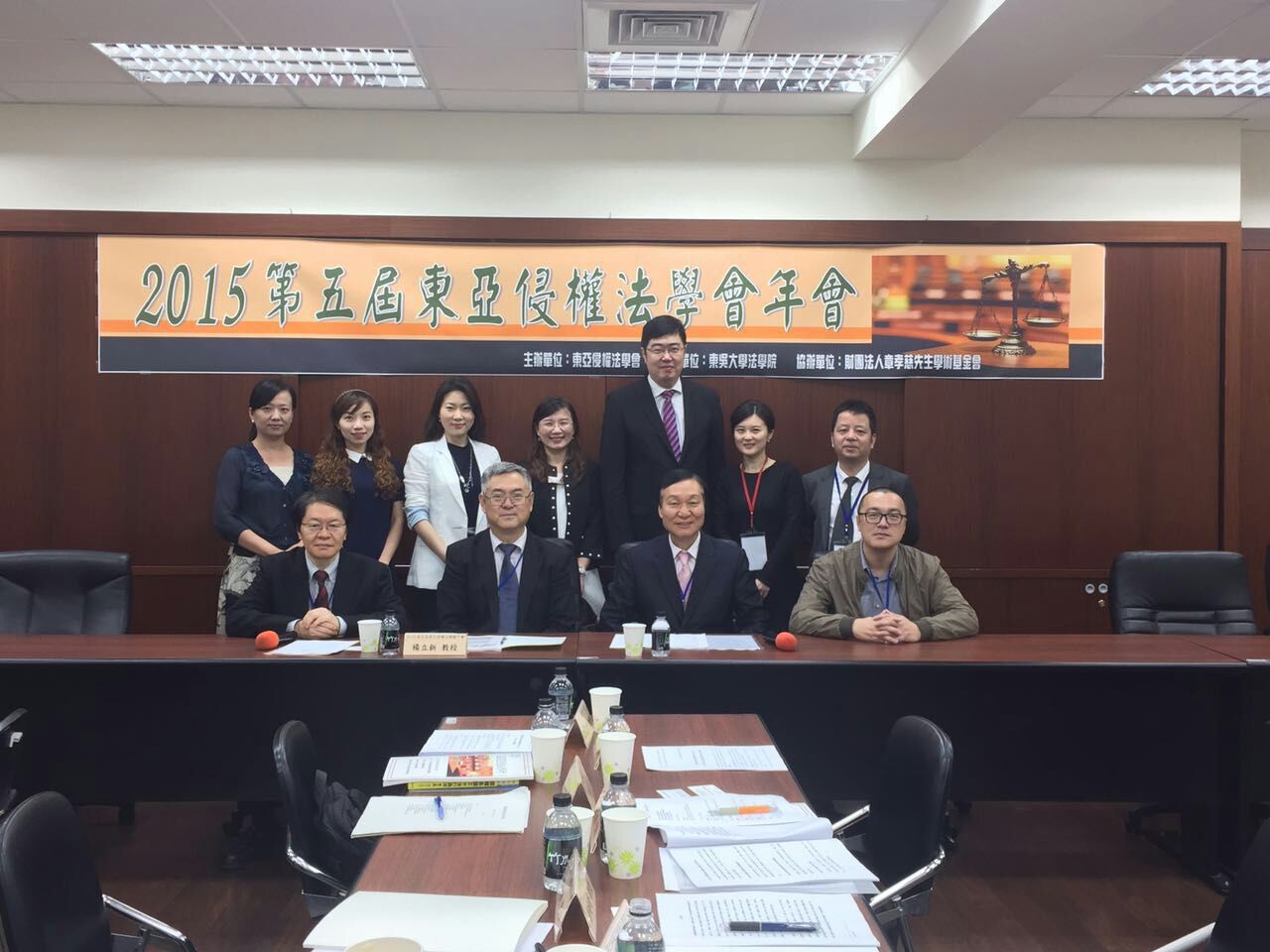 2015年11月21日至22日,“2015第五届东亚侵权法学会年会”在我国台湾地区东吴大学城中校区顺利召开。本次会议由台湾东吴大学77779193永利官网承办,来自韩国庆熙大学、东国大学、日本一桥大学、日本大阪市立大学、澳门大学、台湾东吴大学以及中国人民大学、吉林大学、首都经贸大学、山东大学等十余位学者参加了此次年会。永利官网曹险峰教授作为此建议稿的执笔人之一,与参会学者进行了广泛交流。