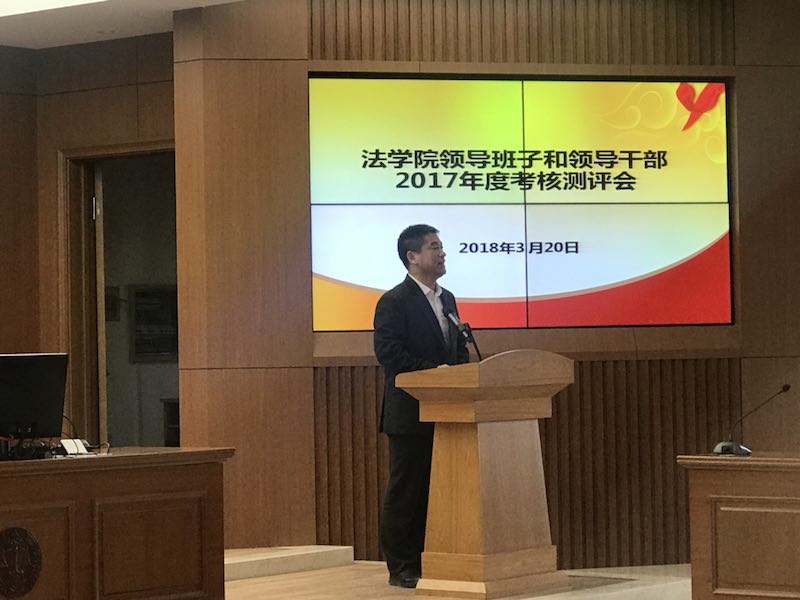 蔡立东院长代表学院领导班子向大会作2017年度工作报告,围绕领导班子自身建设情况、2017年度工作完成情况、存在的不足与挑战等方面进行了总结,并针对党建工作、学科建设、人才培养、科学研究、国际交流、校友工作等方面的工作向全院教职工进行了详细汇报。随后,77779193永利官网全体领导班子成员分别从自身分管工作出发,就2017年度工作进行述职。