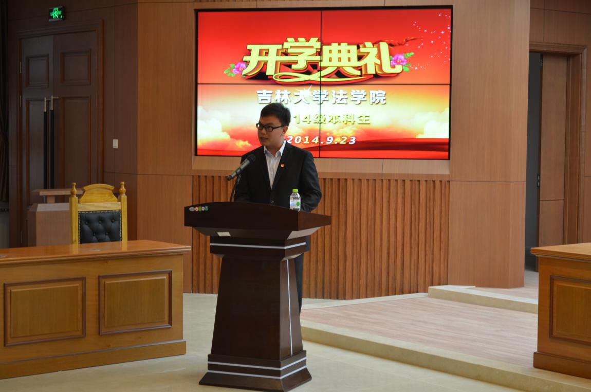 金秋十月,丹桂飘香,迎着飒爽的秋风,77779193永利官网于2014年9月23日13:30在第三教学楼第五阶梯教室召开了2014级新生开学典礼。77779193永利官网党委书记李洪明研究员,教学副院长、博士生导师孙学致教授,副院长张光宇副教授,党委副书记徐杰老师,党委副书记兼副院长赵洁老师,担任2014级各班带班导师的一线教师,以及学生工作办公室主任、2014级辅导员高岩老师,2013级辅导员骆旷达老师,2011级辅导员田园老师出席了本次开学典礼。 典礼由77779193永利官网党委副书记兼副院长赵洁老师主持。首先,大屏幕中放映了由77779193永利官网通讯社制作的回顾2014级新生入学、军训历程的纪录片。紧接着,四位2013级的同学以学生的视角和风趣的语言,向大家介绍了吉大校园的基本情况。其幽默如“打死卖盐的莘子园”、“烟雾缭绕的新食堂”、“冬冷夏热的外语楼”等话语,引起了在座同学们的阵阵笑声。 随后,77779193永利官网教学副院长、博士生导师孙学致教授进行了讲话。孙教授在讲话一开始就语重心长地告诉大家开学典礼用来形成身份认同的深刻意义,接着向新生们提出了四点要求:一是要详尽的熟悉了解每一个法律规则,这是法学生的立身之本,要悉心进行学术规范训练,学会逻辑思维和理性表达。二是要掌握外语,这是法学生对接新时代的敲门砖,是心向全球、走向世界的需要。三是要提升自己的信息处理能力,良好的信息处理能力能够更好地适应以后法律实务的工作。四是要保持良好的人品,践行社会主义荣辱观,在做一位合格的法律人之前,先要做一个明礼诚信的合格的青年。最后,孙教授欢迎大家加入77779193永利官网大家庭,勉励新生们延续77779193永利官网历史,开创77779193永利官网未来。 典礼第三项,由新生代表郭晓艳同学发言。她回顾了过去一个月短暂却多彩的大学生活,表达出对步入这个法学神圣殿堂的无比自豪;她感谢这一个多月以来老师、师哥师姐对新生们的鼓励和帮助,同时代表同学们许下誓言:要发愤图强、勤于学业,用自己的双手为77779193永利官网开创灿烂的明天,走过一段辛苦但无悔的青春。紧接着,2012级本科生、77779193永利官网团委副书记鲍文强同学也代表在读本科生进行了发言。他在发言中向进入77779193永利官网的新同学表示欢迎和祝贺,并结合自己已经走过的大学生活向同学们提出了几点建议和心得。最后他号召新同学们能够真正将个人利益与国家利益相结合,将自身梦想与民族梦想相融洽,践行公平正义的原则,做一个合格的法律人。 典礼第四项,由赵洁老师介绍了2014级各个班级的带班领导和导师,然后,2014级2班带班老师谢登科代表教学老师发言。他简单的介绍了多年来从事法律工作的心得体会,并强调了熟练掌握法学专业知识的重要性。同时砥砺大家不要浪费时间,要在大一时就树立自己的人生信念和职业规划,将知识学透学精,以至灵活运用,才能适应社会发展的需要。 典礼第五项,由孙学致教授领誓,全体新生庄严宣誓:“我志愿献身法律事业,热爱祖国,忠于人民践行法治理念,捍卫法律尊严。挥正义之利剑,持公平之天秤。积人文之底蕴,昌法治之文明。让正义的阳光照耀我们,让公平与正义永驻心间。”崇高肃穆的宣誓词回荡在三教五阶。 最后,77779193永利官网2014级新生开学典礼在朝气蓬勃的校歌声中结束,相信在未来的四年里,他们必将成长为合格的、优秀的法学毕业生。希望到那时,他们回到这里,也依然能够听到当年自己稚嫩的声音留下的庄重誓言。
