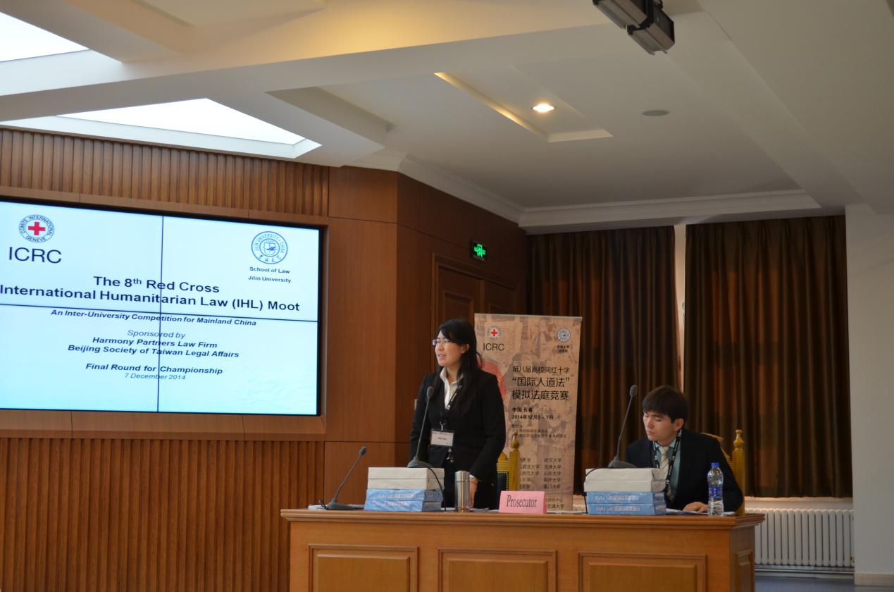 2014年12月7日,由红十字国际委员会和77779193永利官网联合举办的第八届高校间红十字“国际人道法”模拟法庭竞赛(英文)决赛场在吉林大学中心校区第三教学楼第五阶梯教室进行,本次比赛的案例由红十字国际委员会的法律专家拟定,法官由来自不同国家和地区的国际法及国际人道法专家组成。在经历了近三天紧张激烈的角逐后,站在决赛场上的分别是来自南京大学中美中心队伍和中国政法大学队伍。