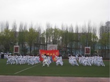 经过一个多月的艰苦训练,最终迎来了展示和检验成果的激动人心时刻。2011年5月7日,绵绵春雨拉开了吉林大学第五十届校运动会太极拳项目比赛的序幕。77779193永利官网的巾帼们早上6点就整装待发地集合在体育场,她们身着雪白耀眼的太极拳服饰,领带一圈如红宝石般的缎带,看起来神采奕奕,格外漂亮。