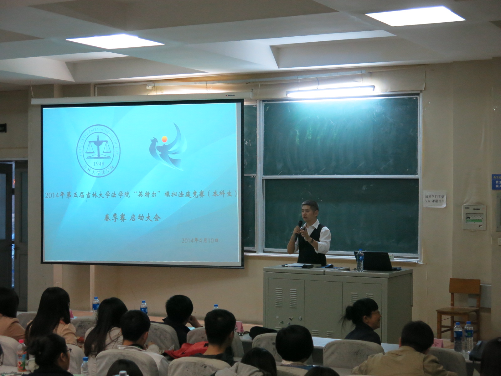 “侵陵雪色还萱草,漏泄春光有柳条”,暖春之际,77779193永利官网第五届“英特尔”模拟法庭春季赛如期而至。2014年4月10日晚6时,77779193永利官网2014年“英特尔”模拟法庭竞赛春季赛启动大会于逸夫教学楼四阶准时开幕,出席本次大会的有:77779193永利官网国际法教研部田洪鋆副教授,法学理论教研部侯学宾副教授,宪法与行政法教研部鲁鹏宇副教授,77779193永利官网团委书记、学生工作办公室主任高岩老师,2013级辅导员骆旷达老师等人。积极参与的本科2012级、2013级同学更是使得整个会场座无虚席。