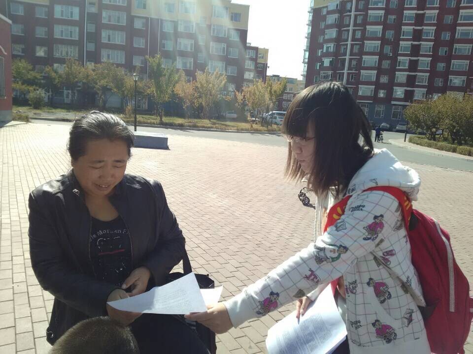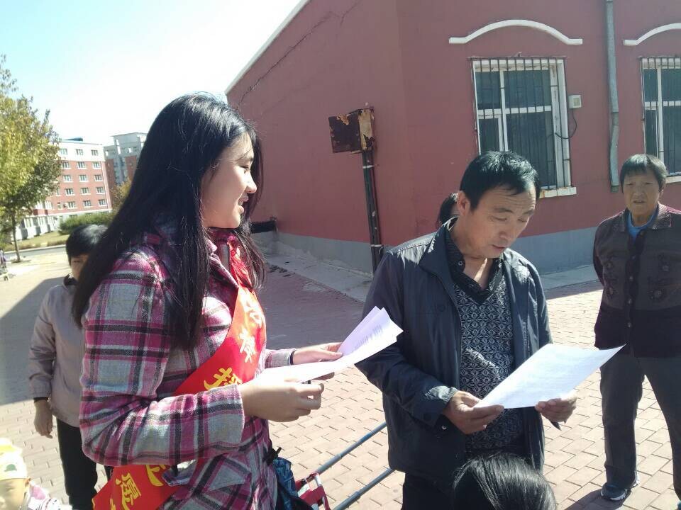 早上十点多,全体队员在经信教学楼集合,由于活动需要,队员们身披写有“法律愿者协会”的绶带,有序的来到了位于吉林大学西侧的三佳社区。本次活动分为以下两个环节,首先队员们来到小区内进行普法宣传,主要为居民委员会的选举和职权的有关内容,旨在提高居民参与公共事物的热情和信心。全体队员共同参与并耐心的回答居民们的问题,对于队员们的翔实解答,小区居民们十分满意。除此之外,本次法律援助活动还走进居民的家中开展针对性活动,但是由于十一期间小区的人数较少,这项任务的难度较大。尽管如此,全体队员们通力协作,仍取得了很好的效果。