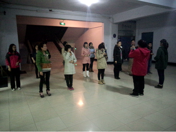 晚上7:30,成员们准时来到经信教学楼四楼走廊进行训练。表演由四首歌组成,整场演出对演员的要求较高,初学手语的人刚接触时肯定会感到很难,这就需要多加训练。正因如此,很多成员都早早来到训练地点,尽管有人放弃,但留下来的这部分不在乎训练的辛苦。他们在音乐的伴奏下拿出双手,学着用一种新的语言来表达心中的感受和关爱。虽然动作总是一次一次地忘记,虽然手势偶尔错乱,但是他们相信坚持训练就能改变这一切。错了就改,忘了再重复,休息了再继续,一遍一遍,成员们默默地学习着这种特殊的语言。尽管到了今晚训练结束的时候,成员们大部分的手势还是无法连贯。但是,在残疾人日的那一天,他们定会会以优美娴熟的手语向大家表达那份对残疾人最实在的爱。