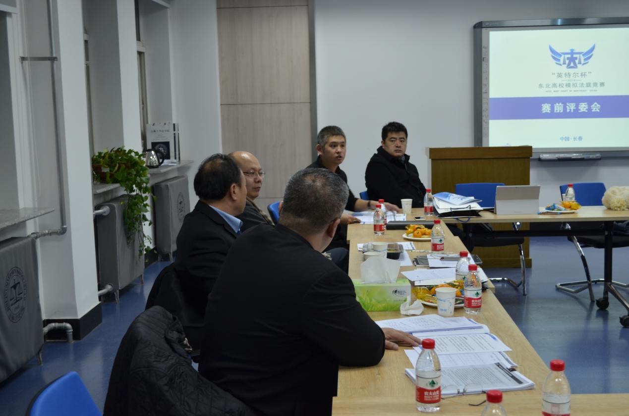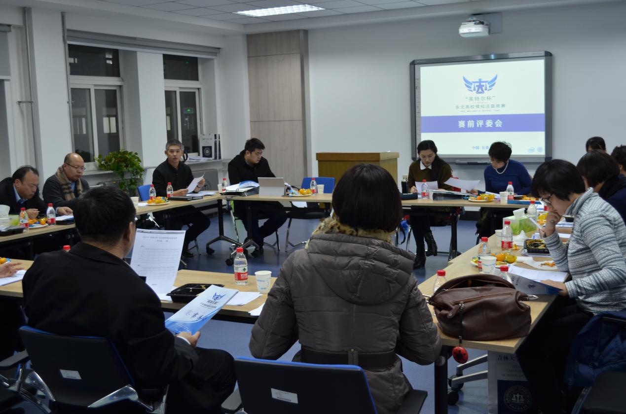 2014年12月7日晚6点,”模拟法庭”赛前评委会议在吉林大学中心校区经信教学楼2楼D区法律人才培养卓越实验班举行。到场的18位法律界人士中,有法官,有律师,以及吉大教授。会议融洽不失严谨,轻松不失认真的工作氛围下,有序展开。