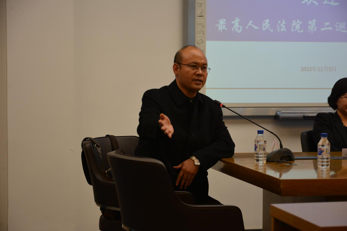 2015年11月5日下午3时许,最高人民法院第二巡回法庭董华法官,高珂法官及范向阳法官与永利官网三十余名老师在经信教学楼D区二楼复合型卓越法律职业人才实验班举办了一场交流座谈会。会议由永利官网王艳梅副教授主持,座谈会在轻松愉快的氛围中召开。会议首先由三位法官对第二巡回法庭的机构设置和建立历程进行了介绍性发言,突出强调了二巡法庭建立的高效性和团队审判模式,即一名主审法官带一名法官助理和一个书记员。随后范向阳法官总结了东北地区民事案件特点,认为案源主要集中在传统民事纠纷领域:如借款合同纠纷、买卖合同纠纷、建设工程合同纠纷及执行异议之诉等。并指出这和东北地区自身经济发展状况等因素密切关联。高珂法官则介绍了现实中二巡法庭在司法审判中遇到的主要问题:案件受理量过大,审理范围与下级法院之间没有区分,因此耗费了巨大的司法资源。紧接着永利官网老师和研究生就一些学界热点问题与法官们进行了热切的探讨与交流,问题范围从商事仲裁的司法解释适用,个案请示批复的效力再到最高检的监督检查职能等等,董华等法官们一一发表了自己的见解和司法实践经验。