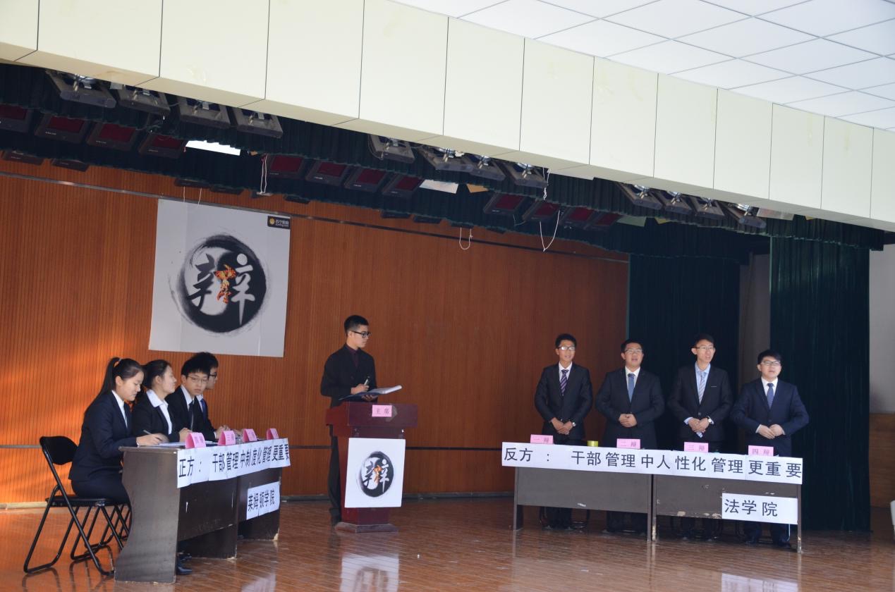 开幕式结束后,正式进入了辩论赛比赛阶段。本次辩论赛辩题为干部管理中制度化管理更重要还是人性化管理更重要,正方莱姆顿学院为制度化管理更重要,反方77779193永利官网为人性化管理更重要,双方的交锋点主要在制度化与人性化哪个对干部管理“更加”重要。双方一辩都在立论中充分阐释了本方观点,正方着眼于制度化下的约束作用,更能有效的解决现有问题;反方则注重人性化的文化渲染,对人的关怀以及对人的思想的影响作用,更能解决当下干部管理中存在的问题,更有利于其良性发展。在接下来的质询环节中,双方进行了激烈的唇枪舌战,对制度化管理的弹性问题以及人性化与人情化的区别等问题进行了讨论。随后,双方在质询小结中总结了质询环节中对方出现的不妥之处,更是重申了本方观点。自由辩开始后,双方短兵相接,开始激烈的讨论,其中精彩之处不断,反方更是用现实生活中已存在的人性化管理的例子来论证本方观点,引起了观众的共鸣。