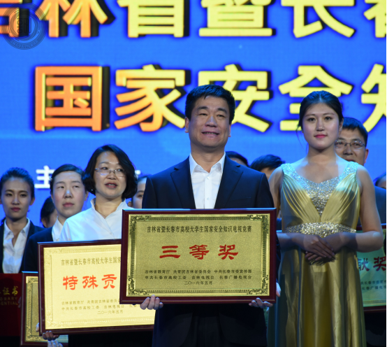 在激烈的比赛之后,比赛结果也随之揭晓,本次竞赛也进入到了颁奖环节。首先揭晓的是最佳个人风采奖,我校马慧敏同学凭借其优秀的现场表现获得该奖。随后揭晓的是优秀组织奖以及特殊贡献奖,优秀组织奖由长春中医药大学等学校取得,同时,特殊贡献奖也由长春理工大学等学校取得。此次比赛的一等奖获得者为东北师范大学代表队,二等奖为东北电力大学代表队及长春财经学院代表队,三等奖获得者为吉林大学代表队、长春工业大学人文信息学院以及吉林工业职业技术学院代表队。在此次比赛中,我校参赛队员展现了其丰厚的知识积累与优秀的表现能力,很好的展现了吉大学子积极的精神风貌。同时也希望借此次活动能够引起同学们对国家安全的重视,能够在日常生活中积极维护国家安全和国家利益。