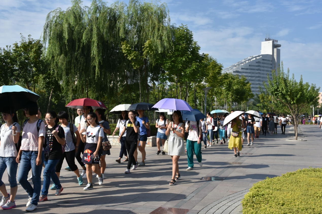 烈日炎炎,清风徐徐,2016级的新生们在班代及志愿者的带领下行走在偌大的吉大校园内。从大学城,经三佳湖公园,到达吉大,先到清湖,荷叶碧绿,新生们在清湖畔停留拍照。然后走过新食堂、日新楼、体育馆,一路上,2016级的新生们闲聊着,在交谈中熟悉彼此。2016级2班的王钦说:“吉大真的很大,我们寝室纷纷表示一定要买单车,不会的一定要学单车,走了一圈还不能认路。”8班刘洁认为“天气很热,队伍很长,全程聊天。风清,日烈。树招摇,水荡漾,人清爽。秋风拂拂,书声琅琅,人才济济,圣路茫茫。”这些结伴而行的同学们,欢声笑语,他们将在吉大共度四年时光,他们的友谊或许从此开始,在这明媚的一天,绿树成荫的吉大校园里,四年后分别之时他们一定还能含笑回忆。经过图书馆、三教,到达东荣楼,他们将在东荣楼参观77779193永利官网院史馆。