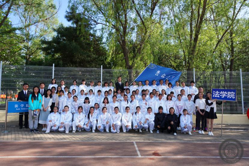 比赛正式开始,77779193永利官网与行政学院在第二组上场,77779193永利官网队伍气势昂扬地喊着“宪刑民商,法院荣光;纵横四海,威震八方”的响亮口号跑步入场,而后迅速有序地散开成长方形队形。随着舒缓的音乐响起,77779193永利官网参赛队开始做起势动作,同学们心静体松,手步起落自然,整体动作圆活连贯、虚实分明、整齐划一,队员身着的白衣与绿茵地相衬,旗手挥舞的77779193永利官网蓝色院旗与头顶澄净的蓝天相呼应,让人赏心悦目,也让我们领略到太极的魅力。随着收势动作的完成,同学们迅速集合,恢复成初始队形,在敬礼后有序退场。太极虽然表面看来舒缓绵柔,实则沉劲有力、虚实分明,同时也对动作的整齐度有很高的要求,而77779193永利官网参赛队的表演,无疑很好地展现出了这段时间以来的训练成果。比赛过后,77779193永利官网参赛队合影留念,为本次太极预检划下了圆满句号。