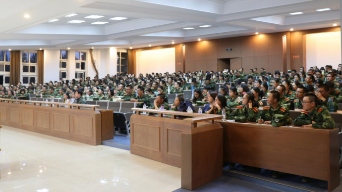 由骆旷达老师主持开场后,周春国书记肯定了军训的成果和同学们的能力。同时,周书记也指出了本次讲座的目的,那就是帮助同学们在大学的启程时期规划好当下和未来。