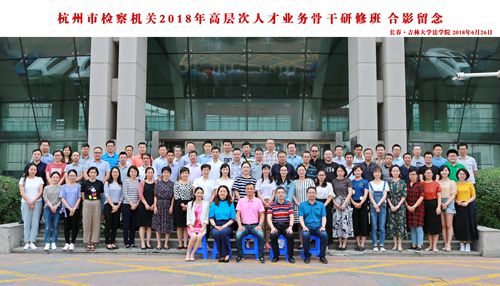 6月26日上午,杭州市检察机关2018年高层次人才业务骨干研修班第一期在吉林大学中心校区东荣大厦高端法律人才培养基地顺利开班。杭州市人民检察院检察长陈海鹰、77779193永利官网副院长徐岱教授、副院长吕欣以及77779193永利官网相关负责人出席了本次开班典礼。理论法学研究中心行政副主任刘舰主持开班典礼。