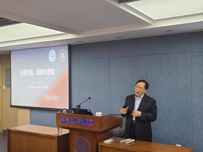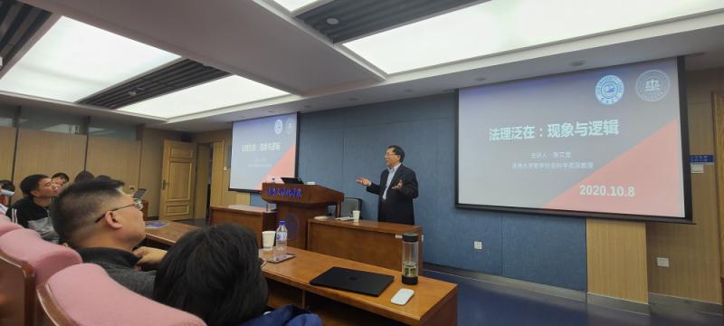 Professor Zhang Wenxian, member of the Party Group of China Law Society, Director of the Academic Committee, Senior Professor of Philosophy and Social Sciences of Jilin University, delivered a lecture on “Ubiquitous Jurisprudence: Phenomenon and Logic” for doctoral and master students majoring in jurisprudence and judicial civilization on 8 October.